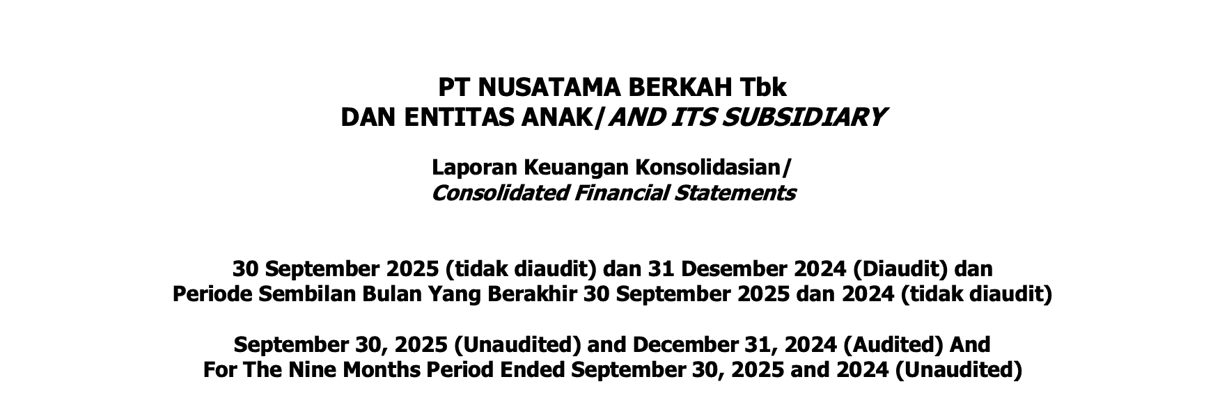 Consolidated Financial Report PT Nusatama Berkah Q3 2025